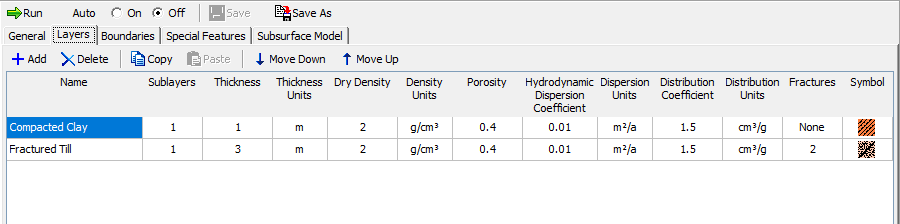 Sorption is defined on a layer-by-layer basis, allowing you to model complex stratigraphy (e.g., a clay liner over a sandy aquifer). POLLUTEv8 allows for different types of sorption inputs depending on the complexity of your data: