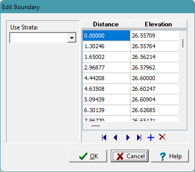 - On the Edit Boundary form the exact distance and elevation of each boundary point can be edited.