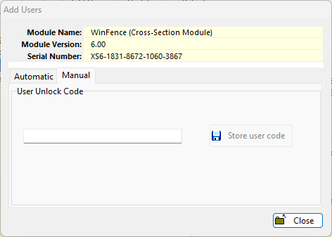 - If you have received new unlock codes from GAEA Technologies, you can enter them on the Manual tab.