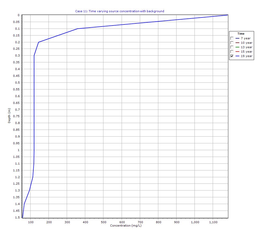 POLLUTEv10 Example 11: Time-Varying Source Concentration with Diffusion (Chloride in Clay)
