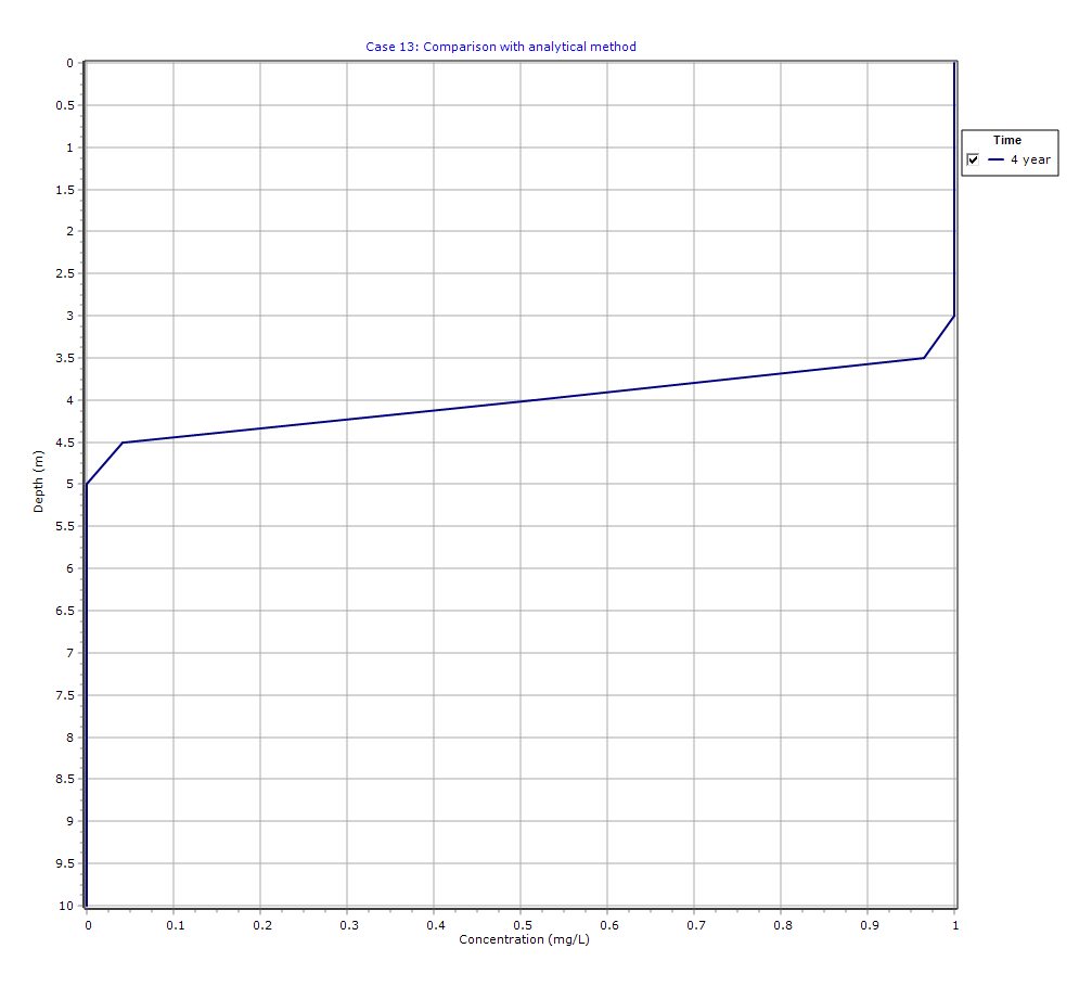 POLLUTEv10 Example 13 provides another important model validation case, comparing numerical results from POLLUTEv10 with the analytical solution implemented in TDAST, developed by P. Javandel and colleagues in 1984.
