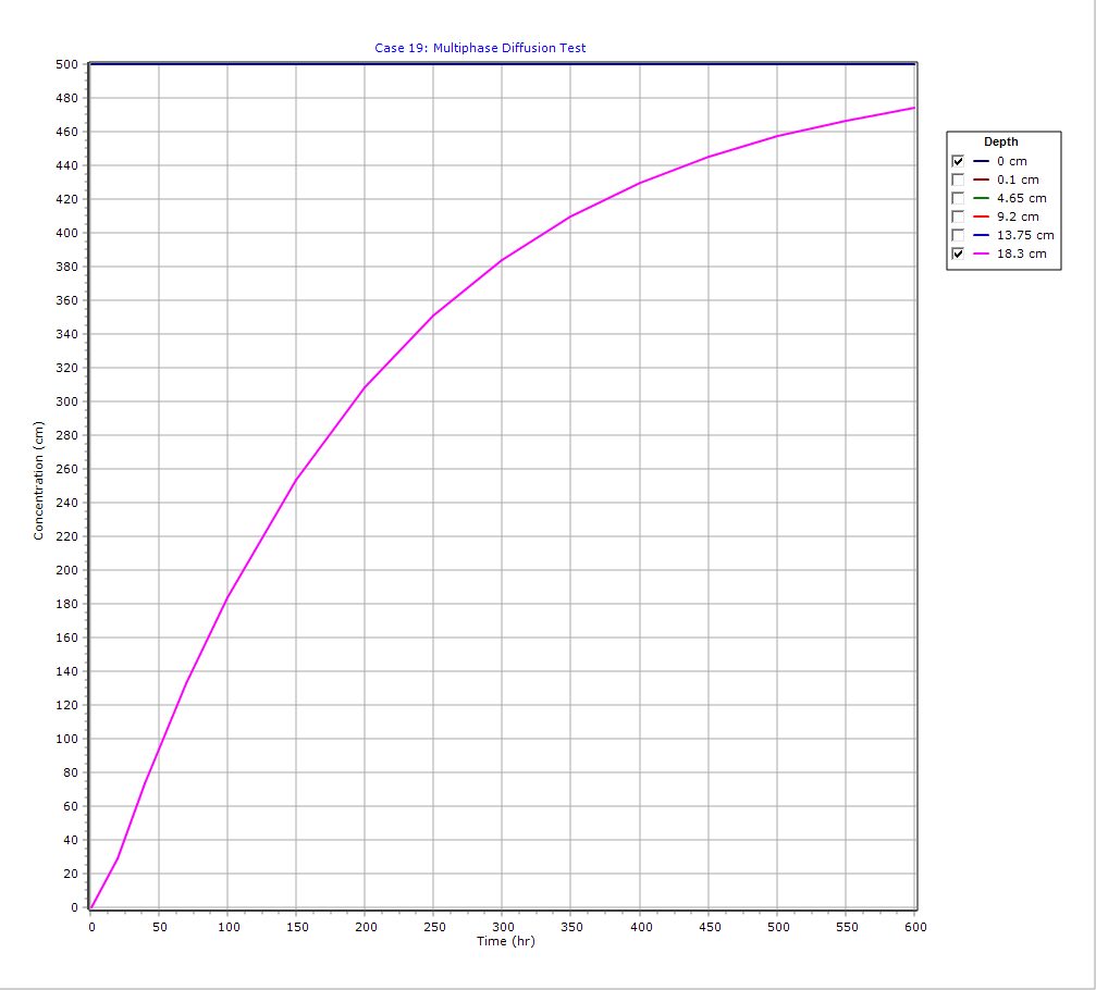 Example 19 provides a strong foundation for modeling VOC transport through engineered barrier systems, particularly in landfill and containment applications. By reproducing a controlled laboratory experiment, it demonstrates the reliability of POLLUTEv10 in handling complex, multi-layer, multiphase diffusion problems.