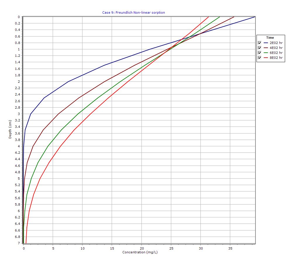 POLLUTEv10 Example 9 demonstrates how incorporating Freundlich non-linear sorption significantly enhances the realism of contaminant transport modeling.