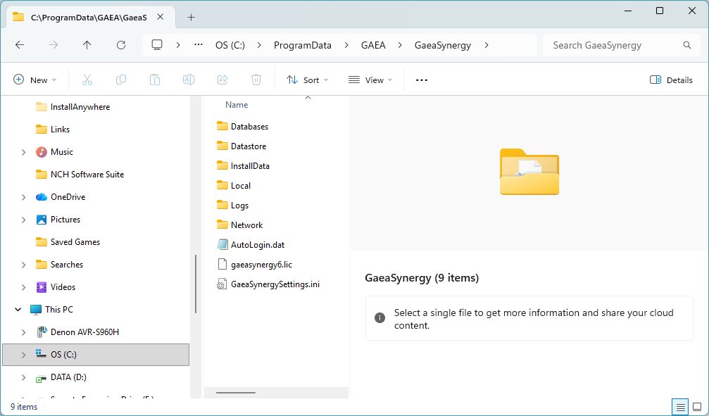 The database and datastore folders are normally in the folder “c:\ProgramData\GAEA[Product]”. Where [Product] is the name of the software; for example, “GaeaSynergy”. If you are not sure where the folders are you can go to Preferences in the program on the old computer and it will show you the folders on the Datasources tab..